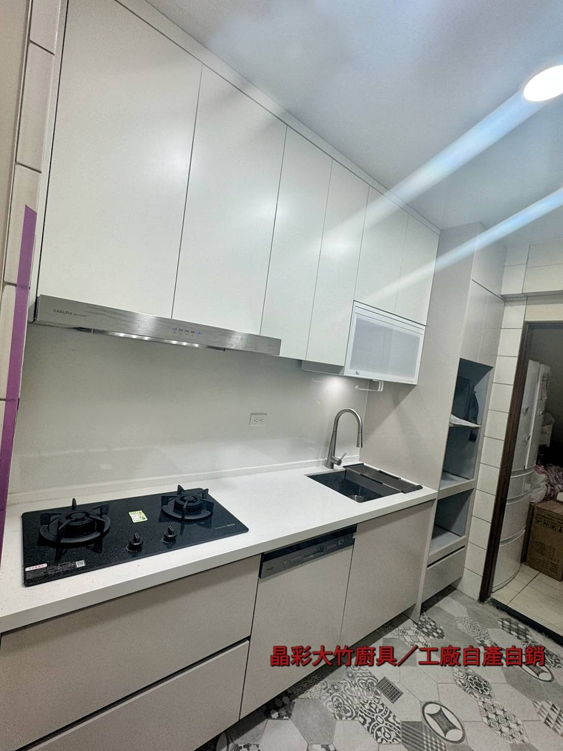 石英石檯面(S1039+結晶鋼烤霧面五面門板(上2581 下+電2584+木芯桶身上下廚=總長286公分