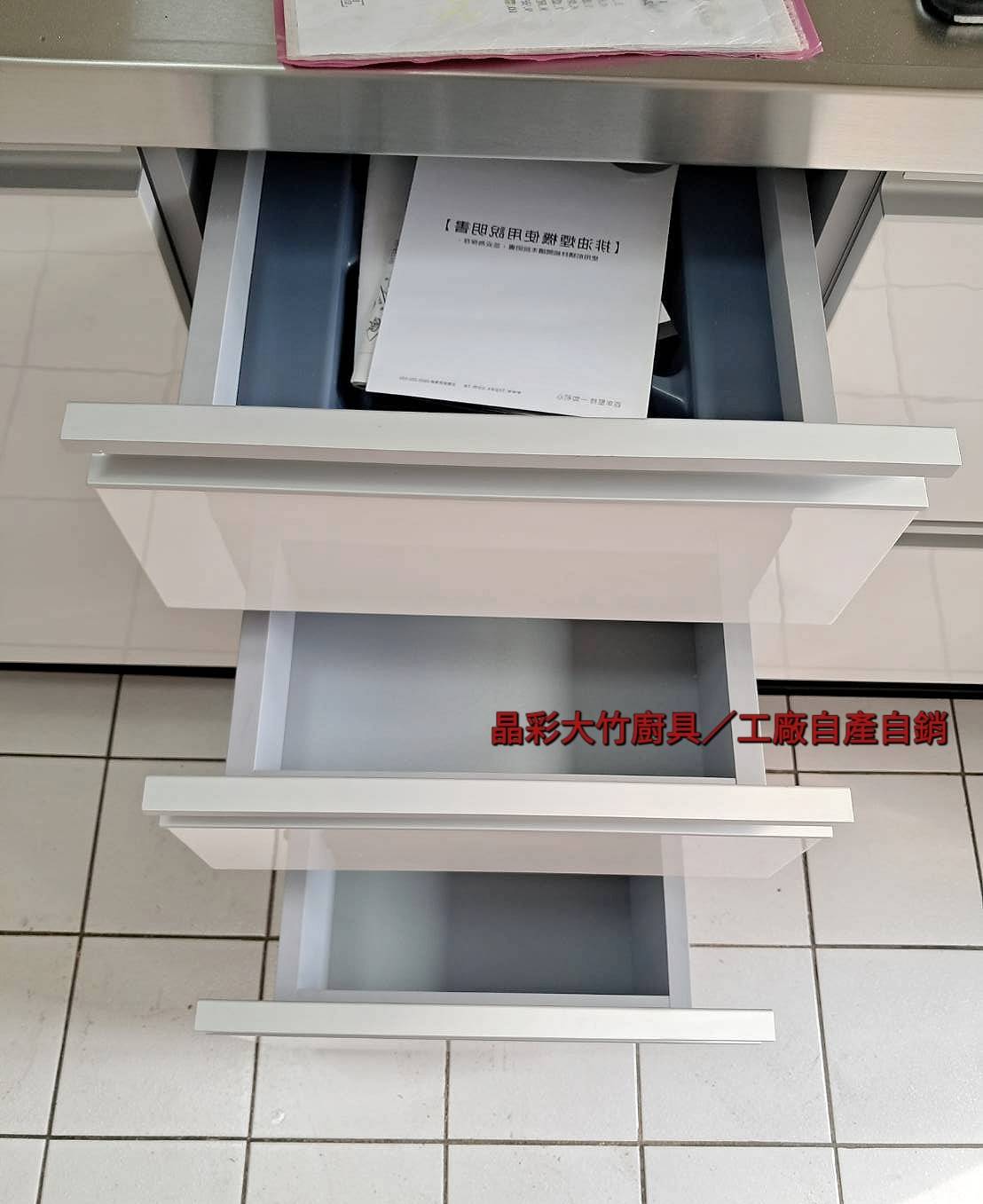 不鏽鋼檯面+結晶鋼烤五面門板(01+木芯桶身上下廚=總長190公分